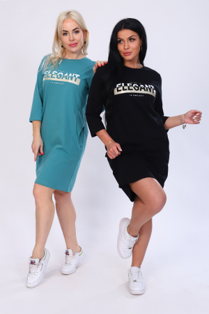 Молодежная туника из кулирки 100% хлопок. Туника полуприлегающего силуэта длиной до колен, рукав 3/4, вырез горловины круглый, два кармана. Дизайн туники дополнен стильным, элегантным принтом.