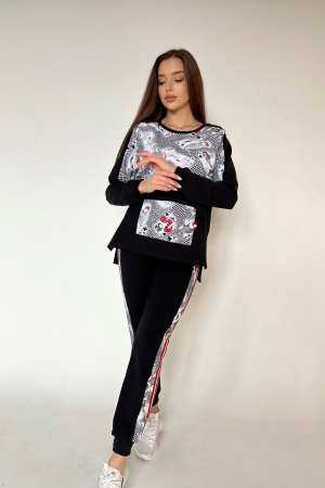 Костюм молодежный. Толстовка с карманом, брюки внизу на манжетах.