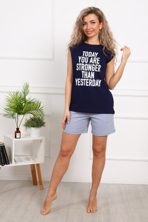 Костюм женский: футболка без рукавов, с принтом на полочке; шорты с боковыми карманами, на эластичном поясе. Комфорт 100% хлопка.