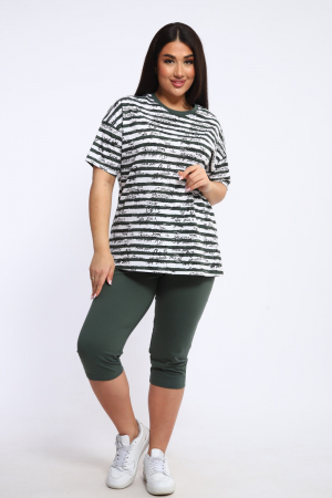 Костюм женский - туника с бриджами оригинальной и очень красивой летней расцветки. . Туника и бриджи выполнены из кулирки 100 % хлопок. Костюм очень легкий, отлично подойдёт для повседневной носки, дачи и прогулок.
