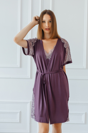 Красивый комплект из сорочки и халатика с роскошной кружевной отделкой.