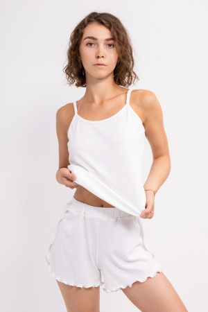 Пижамный комплект в рубчик, специально разработанный любителям качества, моды и стиля. Этот домашний костюм лапша, состоящий из топа на бретелях и удобных коротких шорт с запахом, станет вашим любимым в гардеробе для отдыха дома. Изготовленный из натуральной мягкой ткани вискозы, пижама обеспечивает комфорт и прохладу. Этот элегантный набор - прекрасный выбор для красивых женщин и милых дам, которые предпочитают базовую, но при этом уникальную домашнюю одежду. Подходит для различных типов фигур. Эта двойка из майки и шорт может стать отличным подарком на любой праздник.