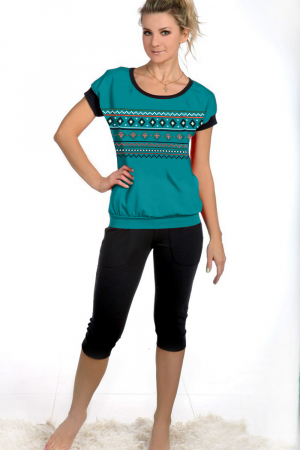 Женская пижама с бриджами и футболкой с коротким рукавом - идеальный баланс стиля и уюта. Модель выполнена из высококачественного кулирного волокна. Комфортный фасон и аккуратный дизайн