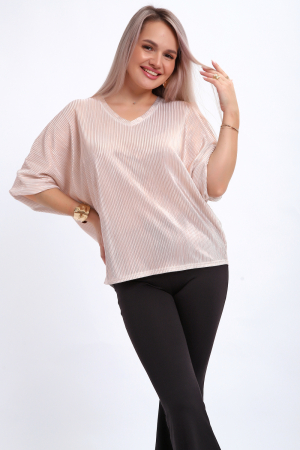Сделайте акцент на вашем стиле с помощью комфортной и изысканной блузки. Нарядная кофта - это необходимый предмет в любом гардеробе. Благодаря свободному крою, она идеально садится на любую фигуру, скрывая то, что хотелось бы спрятать и подчеркивая достоинства. Блузка выигрышно смотрится за счет ткани атлас гофре со стойким напылением фойл, которое не осыпается в процессе носки и после стирки. Ткань атлас гофре хорошо тянется и драпируется, имеет мягкий благородный блеск и совершенно не мнется. Крой блузки лаконичен, без лишних деталей, рукав летучая мышь не сковывает движений, имеет длину 3/4 и оканчивается небольшим манжетом. V-образный воротник зрительно удлиняет шею, обработан обтачкой, длина блузки до линии бедра. Легкая изящная блузка отлично впишется в вечерний наряд, а также будет блестящим дополнением к деловому и повседневному образу.