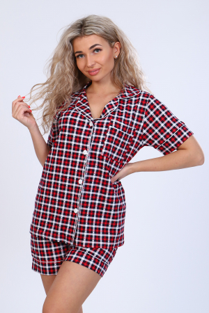 Пижама женская с кантом, на пуговках. Очень модно и красиво смотрится с отделочным кантом по воротнику, подбортам. Карман накладной с кантиком придает красивый вид. Шортики с кантом на манжете. Пижама подойдет как для отдыха в приятной компании, так и для сна.