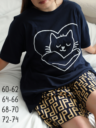 Модель: Футболка пижамная больших размеров (ФП-111 кошечка)