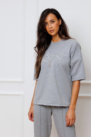 Однотонная футболка оверсайз с вышивкой - мастхэв любого гардероба. Модель лаконичного дизайна, что, в очередной раз, доказывает её универсальность. Вырез горловины округлый. Рукав удлиненный. Материал - очень приятное к телу плотное трикотажное полотно (футер). Состав: 60% хлопок, 40% полиэстер. Рост модели на фото 173 см, размер - onesize.