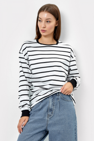 Джемпер женский из качественного хлопка, свободного силуэта. Вырез круглый, рукава длинные на манжетах. Спущенная линия плеча и углубленные проймы не сковывают движений. Отличный базовый вариант на каждый день.