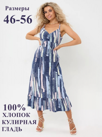 Рисунок абстракции на сарафане добавляет ему элегантности и универсальности, позволяя его сочетать с различными аксессуарами и обувью. Этот сарафан отличный выбор для тех, кто ценит комфорт, стиль и качество.