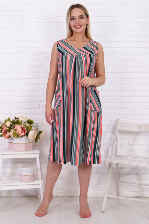 Женский сарафан свободного кроя без рукавов с накладными карманами, отделанными окантовкой. Перед и спинка на кокетке, спереди по центре по пройме встречная складка. Подходит для домашнего и повседневного ношения.