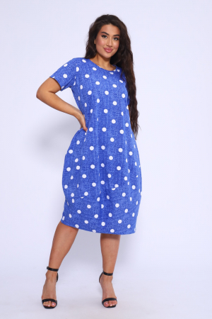 Стильное платье из кулирки. Свободный крой, округлый вырез горловины, длина миди, разрезы в боковых швах, короткий втачной рукав, дизайнерский принт. Платье имеет большую размерную сетку и подойдет на любую фигуру. Карманы в боковых швах придают платью практичности. Платье сшито из самого качественного трикотажа кулирки. Она состоит из чистого хлопка и неимоверно приятно в носке. Благодаря натуральному составу платье дышит, не вызывает аллергий и раздражений. Ткань износостойкая и легко переживет множество стирок и глажек.