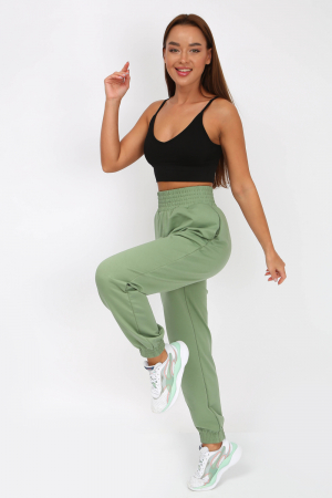 Брюки женские спортивные трикотажные, с высокой посадкой на резинке, по бокам карманы с отрезным бочкам, низ также на резинке. Отличная посадка, хорошо подойдут высоким и невысоким девушкам. Базовая модель подойдет спорта, для дома, для отдыха. Ткань 2-х нитка компакт пенье. Рост модели на фото 160 см, размер 44