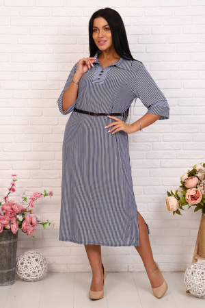 Платье рубашечного покроя, отложной воротник. Рукав 3/4 на манжете. В боковых швах изделия разрезы