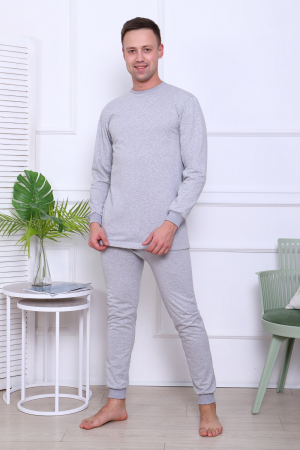Костюм мужской домашний теплый. Футболка с длинным рукавом и штаны на эластичном поясе, с манжетами. Комфортный и уютный, из 100% хлопка, начёс на изнаночной стороне.
