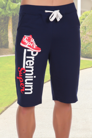 Мужские шорты из футера с лайкрой. Принт в виде кроссовка и надписи, пояс на резинке со шнурком, по бокам карманы, длина приблизительно до коленей. Могут быть парой детским шортам Кевин (продается отдельно). Две расцветки серая и синяя. Размеры от 44 до 62. Возможна розница.