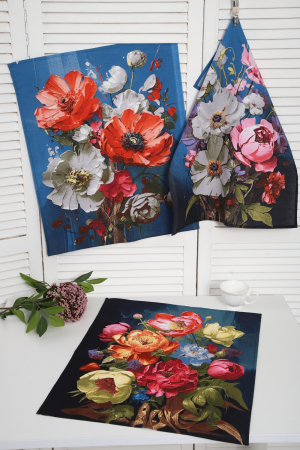 Яркие, стильные кухонные полотенца станут прекрасным подарком для вас и ваших близких! Набор из трех полотенец размером 60*48см ( каждое с индивидуальным рисунком) выполнен из качественного хлопчатобумажного полотна - рогожки. Полотенца отлично впитывают влагу, не линяют, не деформируются, т.е. выполняют свою функцию на кухне и украшают ее.