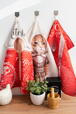 Набор Матильда - это три кухонных полотенца размером 60*48 изготовленых из хлопковой ткани рогожка. У каждого полотенца из набора свой уникальный рисунок., одно с кошечкой и два красных с разными надписями. Кухонные полотенца из рогожки отлично впитывают влагу, быстро сохнут и спокойно переносят машинную стирку. Стойкий рисунок не теряет яркости даже после длительного использования. Набор Матильда отлично подойдет для подарка близким на любой праздник.