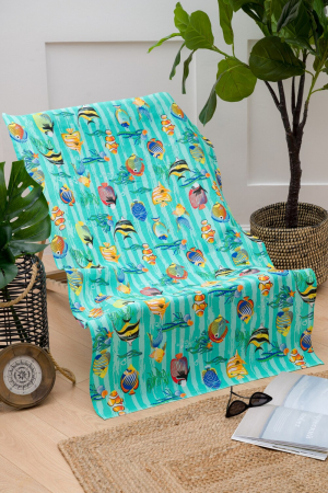 Это пляжное полотенце с рыбками - идеальный выбор для вашего отдыха на пляже или в бане. Размер 80*150 см делает его удобным и практичным для использования как полотенце для пляжа, так и накидки на шезлонг.