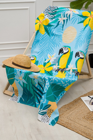 Большое банное полотенце Рандеву, отличное решение для отпуска. Вафельное полотенце с попугаями имеет отличную впитывающую способность, при этом полотенце достаточно компактно, что позволяет его брать с собой. Полотенце универсально, подойдет как для пляжа, бани, сауны, так и для тренировки. Размер полотенца 150*100, по длинной стороне пришита петелька. Изделие представлено в двух цветах, голубой и розовый.