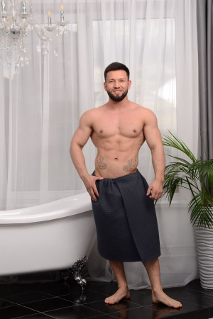 Парео (килт) мужской вафельный на липучке. Плотность ткани: 242 гр/м2. Состав: 100% хлопок. Упаковка: индивидуальный полиэтиленовый пакет. Размер накидки 73*145 см. Парео идеально подойдет для любителей бани и сауны.