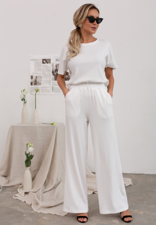 Брюки представлены с блузкой Синти №3, идеально сочетаются в комплекте, но также могут использоваться и по отдельности, в создании индивидуальных образов.