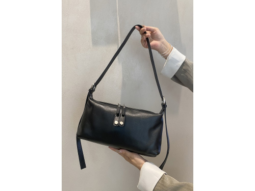 Сумка с ремнем на плечо и возможностью регулировки. Внутри: два отделения, между ними перегородка в виде кармана на молнии. Дополнительно два кармана для аксессуаров, один из которых застегивается на молнию. Снаружи: сзади карман для мелочей на молнии.