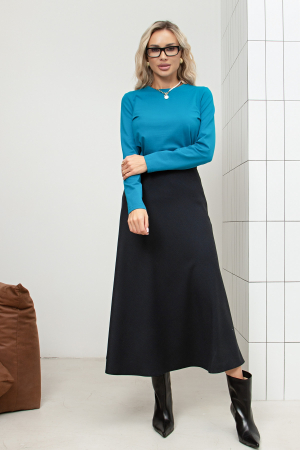 Стильная расклешенная юбка. Верх дополнен втачным поясом. Застежка на пуговицу и потайную молнию расположена в боковом шве. Подол прямой, без разрезов. Благодаря своему крою, юбка прекрасно скрывает недостатки в области бедер.
