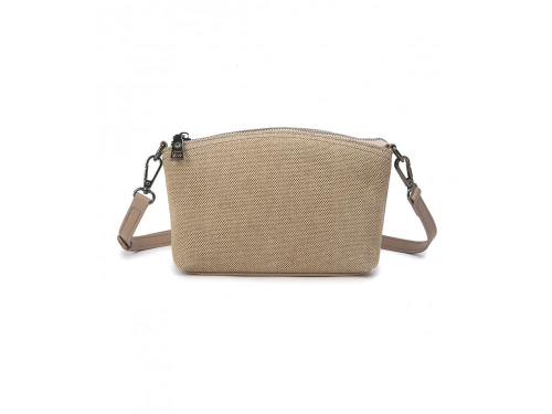 Сумка женская из натуральной кожи, лицевая часть которой обшита рогожкой. В комплекте кожаный ремень с возможностью регулировки.