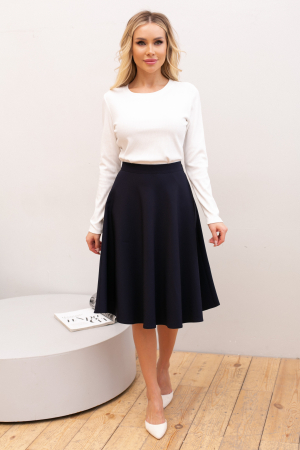 Классическая юбка полусолнце из однотонного костюмного полотна. Верх оформлен втачным поясом. Застежка на пуговицу и потайную молнию находится в боковом шве. Низ ровный, без разрезов. Модель без подклада.
