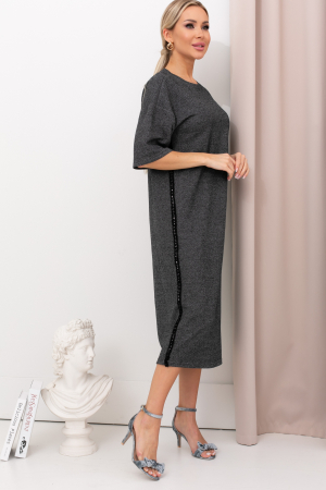 Удобное трикотажное платье прямого силуэта со спущенным коротким рукавом. Круглая горловина на внутренней обтачке. Боковые швы декорированы тесьмой. Модель без застежки.