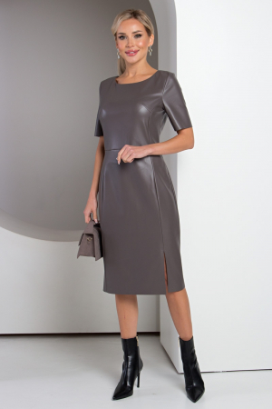 Стильное платье прилегающего силуэта выполнены из эко - кожи на замшевой основе. Округлая горловина на внутренней обтачке. Короткий втачной рукав. Модель отрезная по линии талии. По спинке застежка на потайную молнию. Низ ровный, по переду разрез. Платье идеально впишется в ваш гардероб.