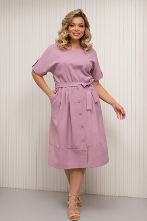 Красивое платье приталенного силуэта. Цельнокроенный рукав оканчивается манжетами на отворотах с патой. Круглый вырез горловины. Модель отрезная по линии талии, присборена на эластичную резинку. В боковых швах имеются функциональные карманы. По передней части юбки выполнена декоративная планка на пуговицах. Низ ровный, без разрезов.