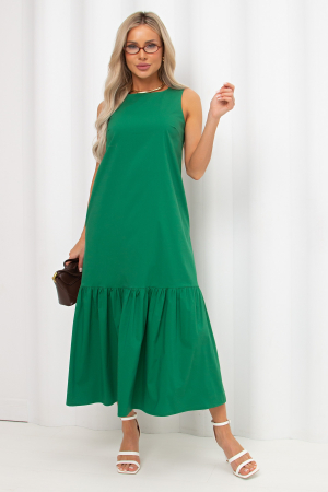 Летнее платье А - силуэта. Округлая горловина на внутренней обтачке. По спинке застежка на потайную молнию. В боковых швах функциональные карманы. Низ оформлен притачным воланом.