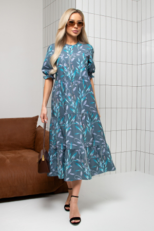 Комфортное платье свободного кроя из легкой ткани. Округлая горловина на обтачке, сзади разрез - капелька с застежкой на петлю и пуговицу. Короткий втачной рукав по низу присборен на эластичную резинку. Модель отрезная по линии талии. Юбка состоит из трех ярусов. Идеальный вариант на каждый день.