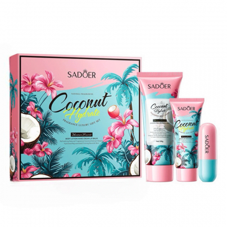 Подарочный набор по уходу с ароматом кокоса SADOER – это настоящая находка для любителей нежных и экзотических ароматов. В этот изысканный набор входит все необходимое для того, чтобы ваша кожа всегда оставалась мягкой и ухоженной. Начнем с лосьона для тела – он обволакивает кожу нежностью, увлажняя и питая её благодаря уникальной формуле на основе кокосового масла. Легкая текстура лосьона быстро впитывается, оставляя после себя лишь нежный аромат кокоса, который будет сопровождать вас на протяжении всего дня.