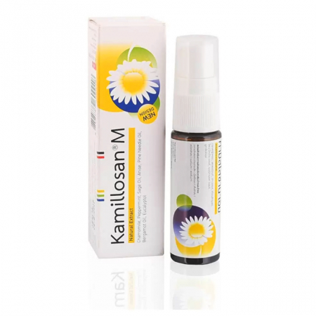 Спрей Kamillosan M обезболивает и дезинфицирует, способствует заживлению ранок на слизистой рта и поможет вылечить ангину буквально за 2 дня.