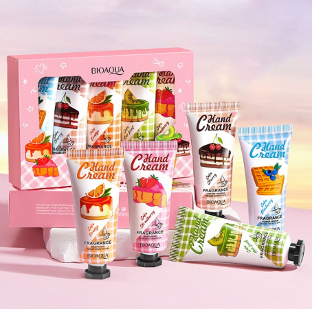 Увлажняющие и питательные ароматные крема для рук с фруктовыми экстрактами, глицерином и аллантоином.