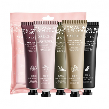 В наборе 5 кремов для рук в ниацинамидом по 30 гр. каждый.