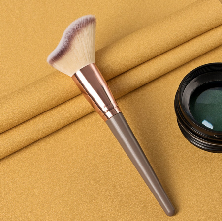 Скошенная кисть идеально подходит для нанесения сухих текстур. Можно использовать для нанесения румян, хайлайтера и бронзера.