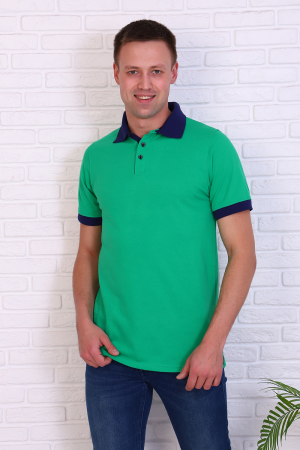 Футболка поло мужская из ткани лакост пенье 100% хлопок. Вязаные воротник и манжеты, планка на 3 пуговицы контрастного синего цвета, по бокам разрезы. Футболка удобная и комфортная, подойдет для повседневной носки, прогулок и отдыха, после стирки сохраняет цвет и форму.