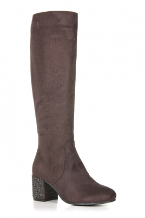 Сапоги выполнены из искусственного велюра. Внутренняя отделка и стелька из текстиля. Детали: декоративные элементы, сбоку молния, скрытая эластичная вставка.