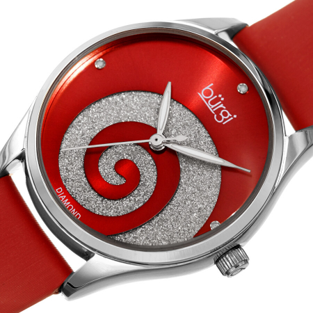 Swirl Quartz Diamond Red Dial Ladies Watch