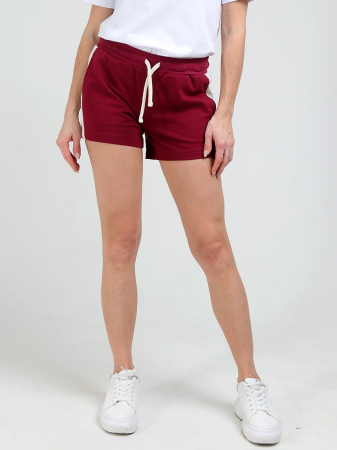 Женские трикотажные шорты, выполнены из хлопкового полотна с добавлением полиэстра. Приятны при контакте с кожей, не сковывают движения. С боков оформлены лампасами контрастного цвета. В боковых швах карманы. В поясе шорты собираются широкой резинкой. Дополнительно в поясе имеется шнур.