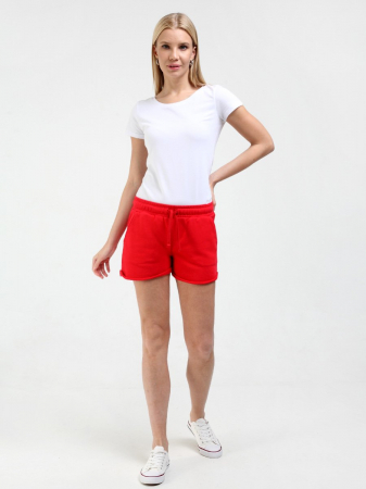 Женские трикотажные шорты, выполнены из хлопкового полотна с добавлением полиэстра. Приятны при контакте с кожей, не сковывают движения. В боковых швах глубокие карманы. По низу зафиксированные подвороты. В поясе шорты собираются широкой резинкой. Дополнительно в поясе имеется шнур.