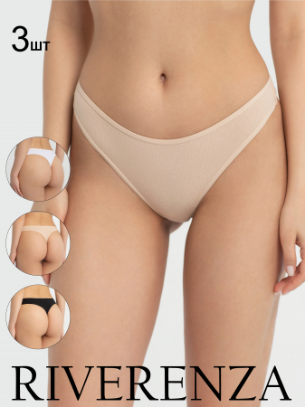 95% хлопок, 5% эластан. Хлопковые трусы стринги в рубчик средней посадки. Набор 3шт.