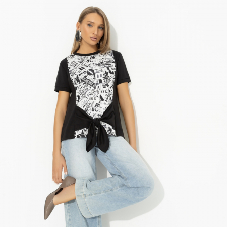 Girls, все сюда! Это восторг от CHARUTTI. Как футболка, только круче. И акценты, и нотка ностальгии в виде принта «газета» из 80-ых, и бант, и комфорт на максималках. Нам такое надо. Футболка классического силуэта из эластичной ткани, удлиненная. Завязки по передней стороне изделия.