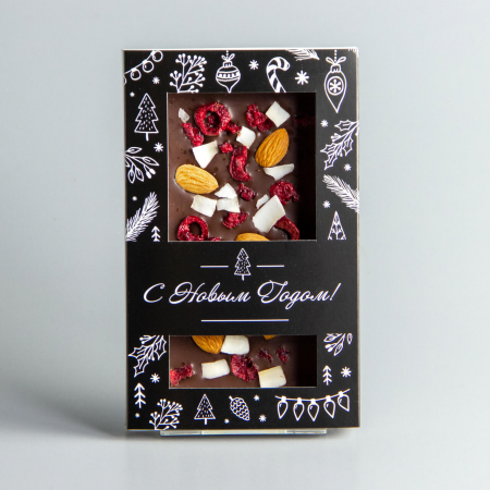 состав: какао тертое, сахар, масло какао, эмульгатор: соевый лецитин, ароматизатор: ванилин идентичный натуральному, эмульгатор Е476, клубника, фисташки и жаренный кешью. Может содержать молочные продукты.