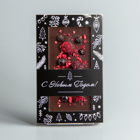состав: какао тертое, сахар, масло какао, эмульгатор: соевый лецитин, ароматизатор: ванилин идентичный натуральному, эмульгатор Е476, малина и черная смородина. Может содержать молочные продукты.