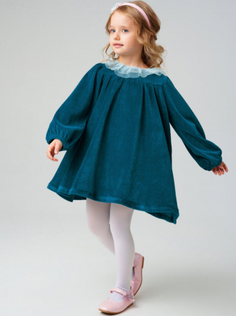 Нарядное детское платье для девочки от PlayToday — уютная и стильная модель из мягкого велюра с акцентом на воротнике из многослойного фатина. Такое платье идеально подойдёт для праздников, фотосессий и особых случаев, сочетая комфорт с эффектным дизайном.