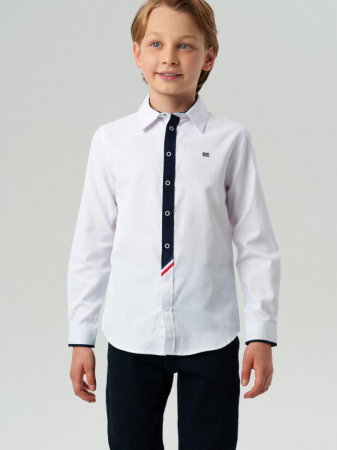 Приталенная рубашка с длинным рукавом застёгивается на классические кнопки, а воротник держит форму даже после многократных стирок. Белый цвет делает её универсальной — её можно надеть и с жилетом, и под школьный пиджак из коллекции PlayToday, а также дополнить галстуком или бабочкой. Это не просто школьная рубашка — это база, с которой начинается любой продуманный образ.